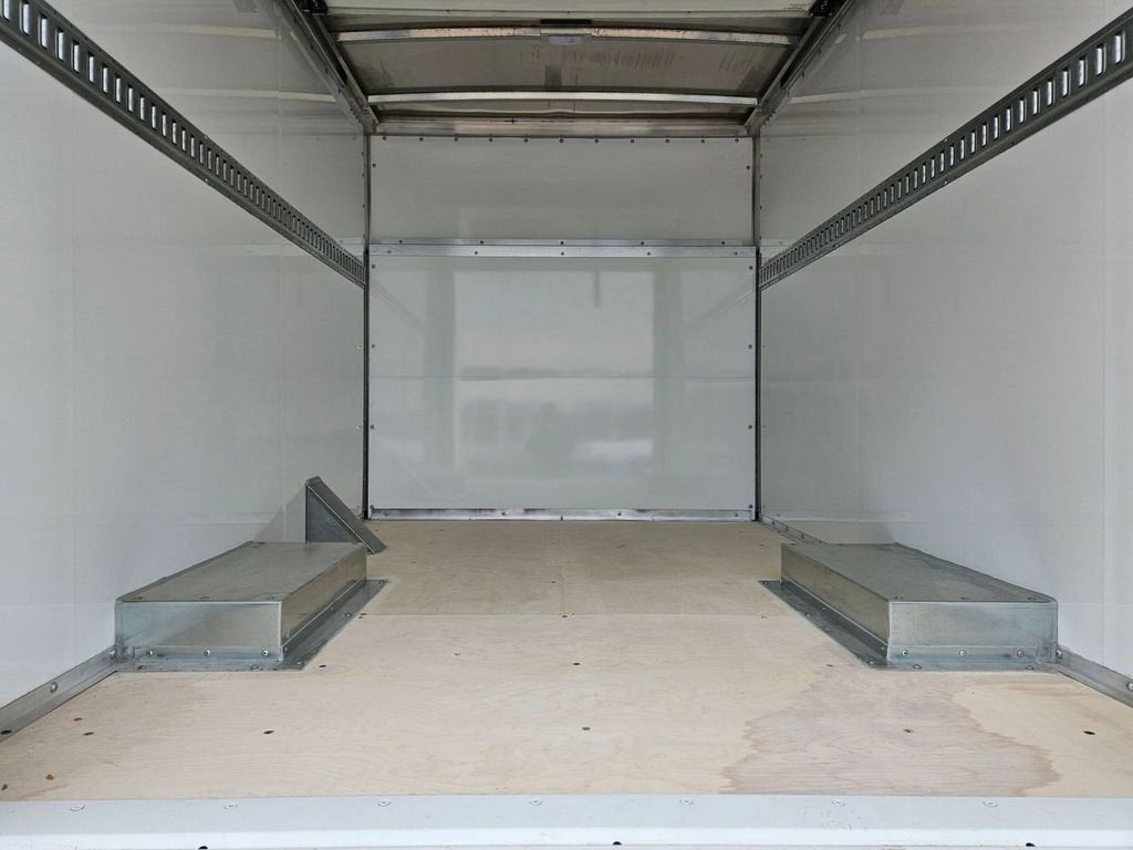 The body is a Wabash XL 12' Cargo body with translucent roof, rear roll up door, grab handles at doors, back up camera, 2 receiver hitch, e track and a rear liftgate for easy loading and unloading.